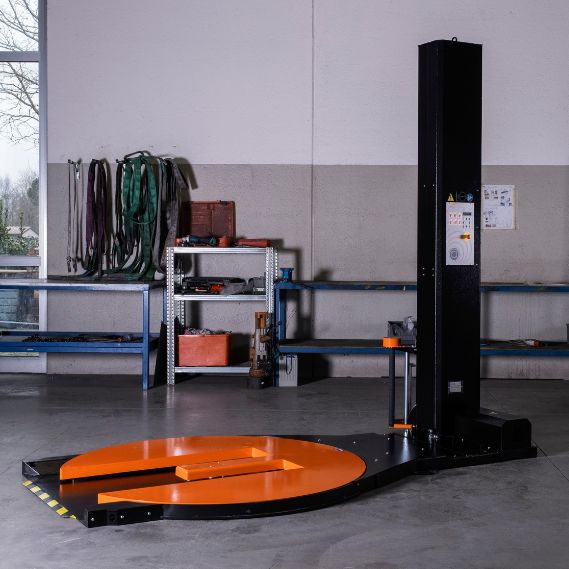 Owijarka palet EvoPac Volta T: owijarka w wycięciem w talerzu dla wózka paletowego